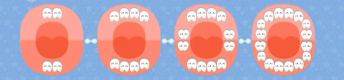 ①앞니(8~13개월): 아래 앞니(8개월) → 위 앞니(10개월) → 옆 앞니(11~13개월)